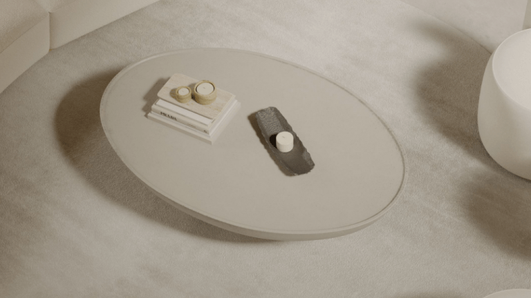 Like a statue in a grand space, this stunning coffee table stands out with its monumental design and sophisticated aesthetic. The soft curves crafted from concrete bestows a refined radiance upon t...