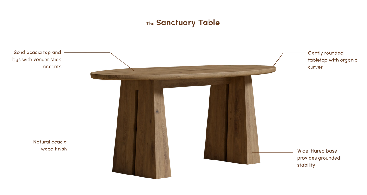 - Solid Acacia top and legs, with a veneer wrapped top for a uniform appearance